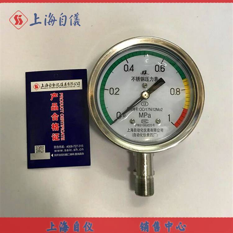 Y-B不锈钢压力表广泛应用于石油,化工,化纤,冶金,电站等工业部门对耐蚀,抗振要求较高的工艺流程中测量各种介质的压力,上海自动化仪表四厂生产的Y-100B-FZ不锈钢耐振压力表采用全不锈钢材料制成,仪表具有整体机构设计合理,工艺精致,有较高的测量精确度和持久的稳定性,不仅在国内被广泛应用,而且可提供出口。
